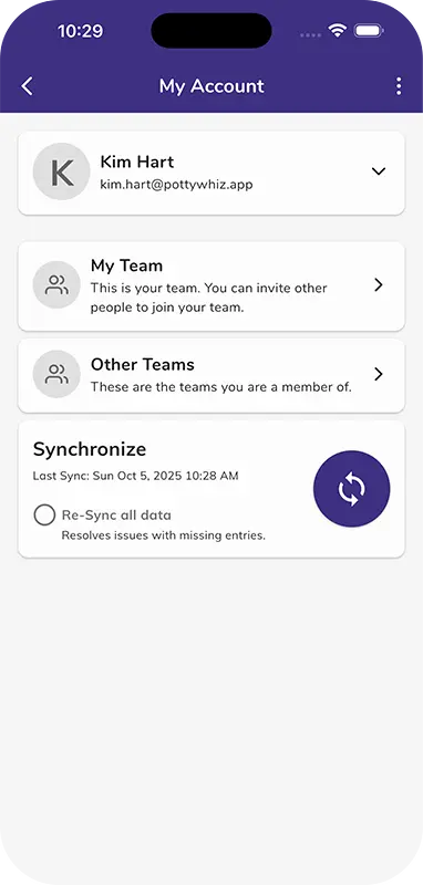 Potty training is a team effort, and Potty Whiz makes it easy to involve everyone who cares for your child. With the family sharing feature, you can invite parents, grandparents, babysitters, or any caregiver to join your potty training team.