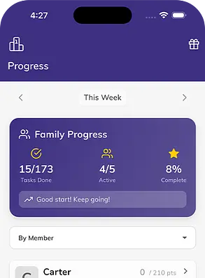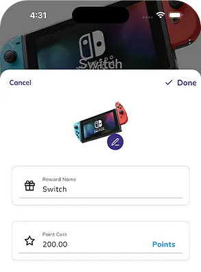 Motivieren Sie Ihre Familie mit flexiblem Taschengeld und Belohnungen, bei denen Mitglieder Geld pro Aufgabe oder wöchentlich verdienen, oder Punkte für aufregende Ziele sammeln, wie 200 Punkte für eine Nintendo Switch zu verdienen.