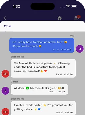 Kommunizieren Sie mit Familienmitgliedern über spezifische Hausarbeiten durch dedizierte Chat-Threads zum Stellen von Fragen, Geben von Updates oder Aussprechen von Ermutigung.